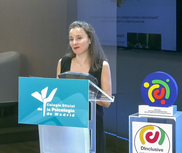 Como momento destacado, De la Plaza hizo entrega del sello de calidad DInclusive, que certifica la accesibilidad digital de la plataforma, a la Decana, en reconocimiento al cumplimiento de estos estándares, en un acto simbólico del compromiso del Colegio con la accesibilidad universal y la transformación digital al servicio de las personas.