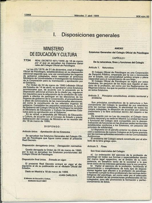 ComunicaciónAprobación de los Estatutos Generales del Colegio Oficial de Psicólogos. Archivo Histórico del COPM