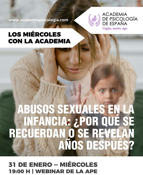 ComunicaciónLa Academia de Psicología de España celebrará la Conferencia «Abusos sexuales en la infancia: ¿Por qué se recuerdan o se revelan años después?»