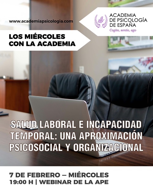 ComunicaciónLa Academia de Psicología de España Celebrará la Conferencia «Salud laboral e incapacidad temporal: Una aproximación psicosocial y organizacional»