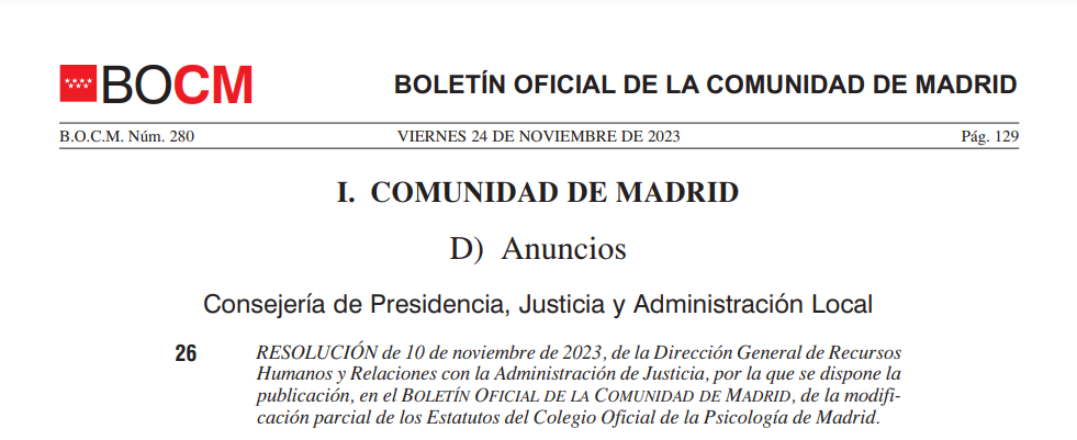 ComunicaciónPublicados en el BOCM los nuevos Estatutos del Colegio